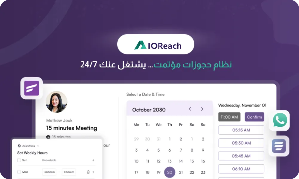 نظام الحجز في AIOReach مذهل! عملائي يحجزون بسهولة، وأتلقى تنبيهات فورية. مع CRM والتحليلات، أصبح لدي رؤية أوضح لإدارة عملي بفعالية.